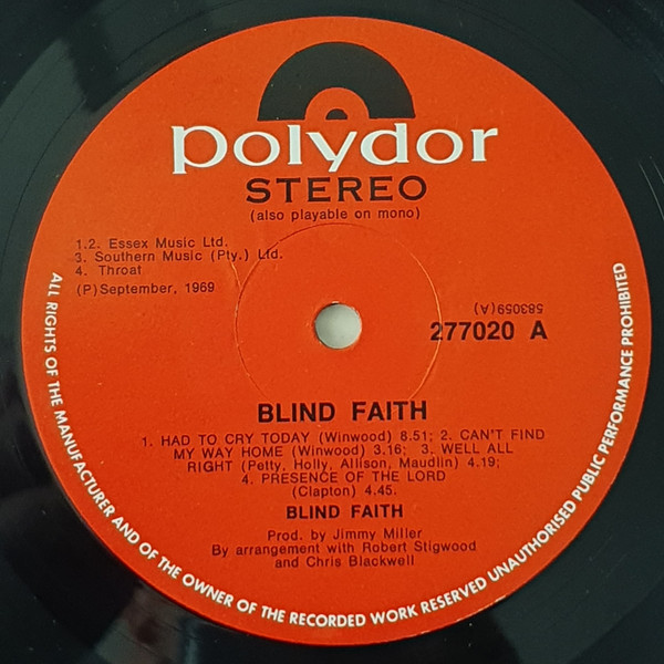 Blind Faith (2) – Blind Faith – Vinyl Record VG/VG+ (Pre Loved)