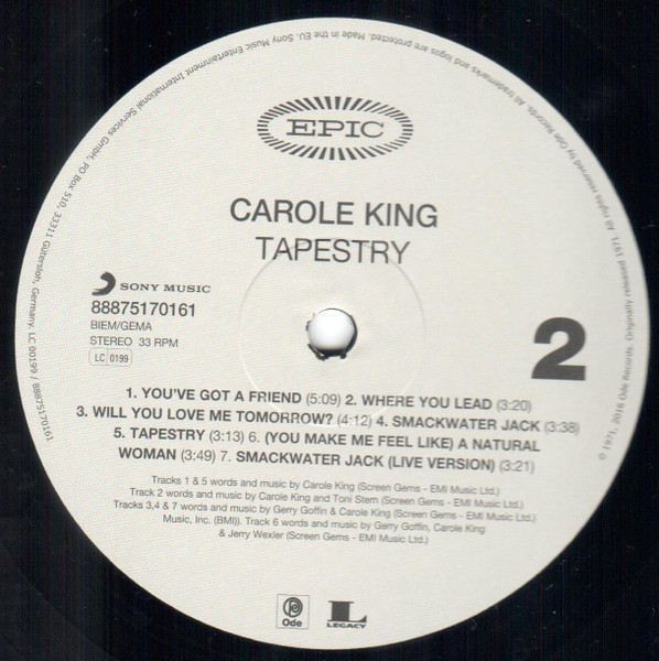 Carole King – Tapestry – Vinyl Record NM/NM (Pre Loved)