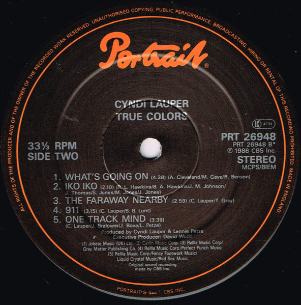 Cyndi Lauper – True Colors – Vinyl Record VG+/VG+ (Pre Loved)