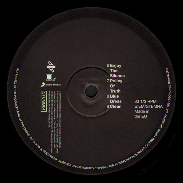 Mute logo is placed under the barcode on this release; Legacy logo on disc labels with the same matrix as [r=9947433]. There is no Legacy Vinyl hype sticker on cover.