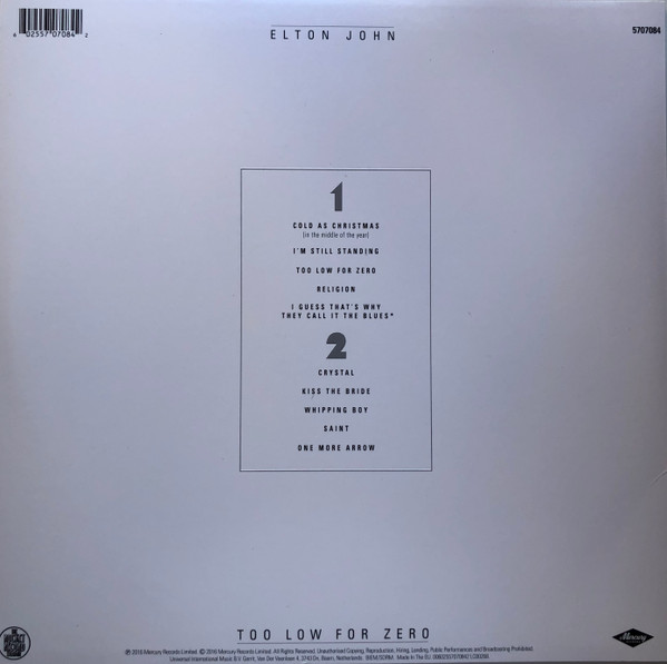 Elton John – Too Low For Zero – Vinyl Record NM/NM (Pre Loved)