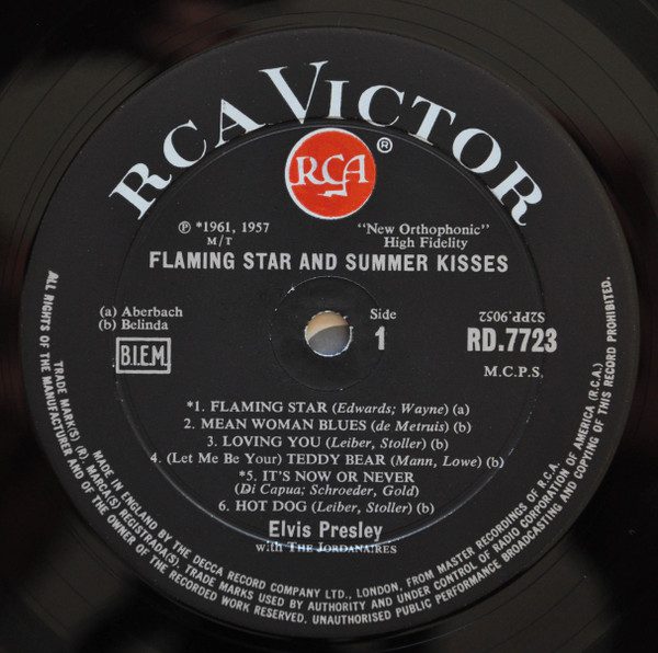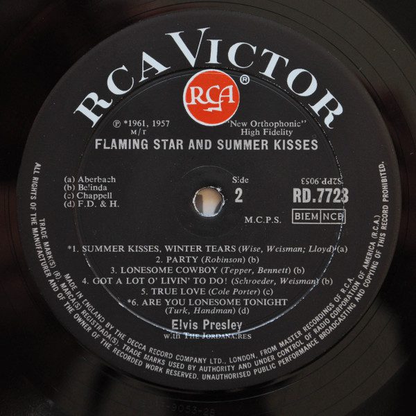 (P) 1957, except Flaming Star; It’s Now Or Never; Summer Kisses, Winter Tears; Are You Lonesome Tonight all (P) 1961.
