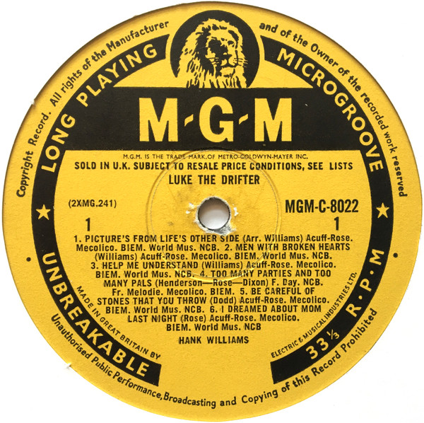[A1 to A3, A5 to B1, B3 to B6] Acuff-Rose. Mecolico. BIEM. World Mus. NCB.