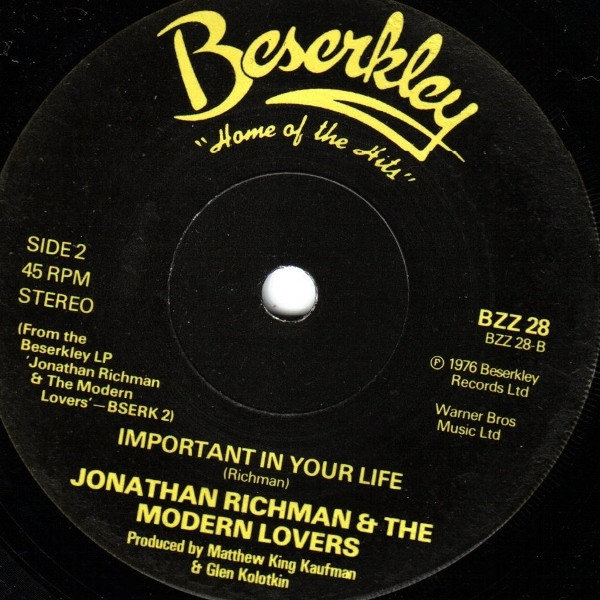 B Side – From the Beserkley LP “Jonathan Richman & The Modern Lovers” – BESERK 2.