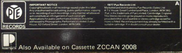 Manufactured And Marketed By PYE RECORDS ATV House, GT.Cumberland Place, W.1.