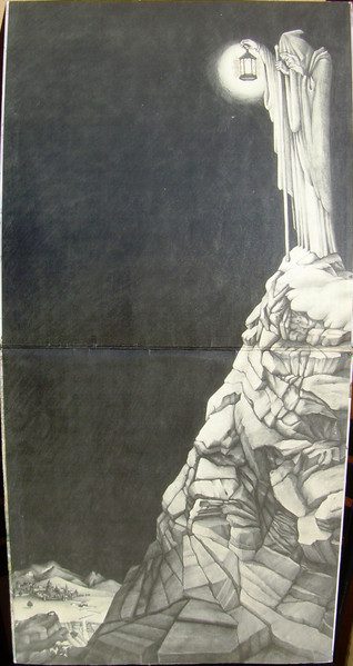 Sleeve is a gatefold, thick card with sealed left side edge when opened up to reveal ‘The Hermit’ drawing. Disc is housed in a grey card sleeve with credits on one side and the lyrics to ‘Stairway to Heaven’ on the other.