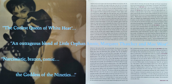 Gatefold cover, sticker on shrinkwrap: “MADONNA’S 1990 ALBUM OF GREATEST HITS – DOUBLE VINYL – Includes VOGUE LIKE A PRAYER MATERIAL GIRL 603497859344”, printed inner sleeves.