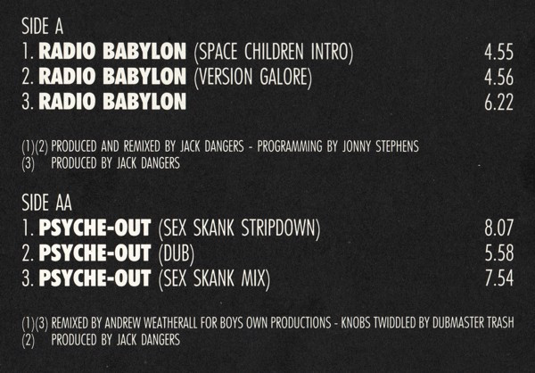 B1 and B3 remixed for Boys Own Productions – Knobs twiddled by Dubmaster Thrash.