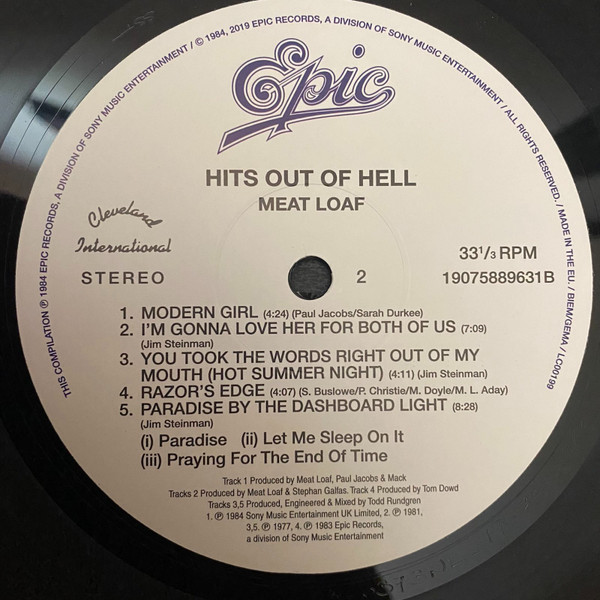 Meat Loaf – Hits Out Of Hell  – Vinyl Record NM/NM (Pre Loved)