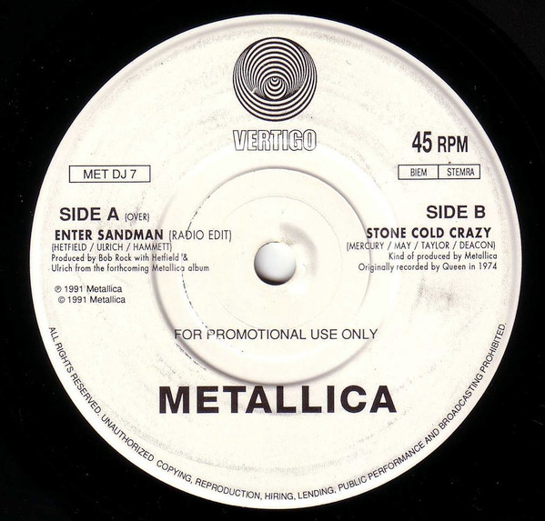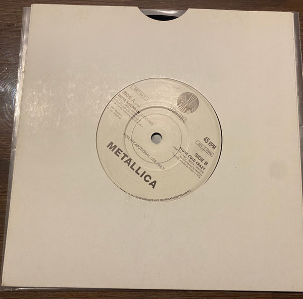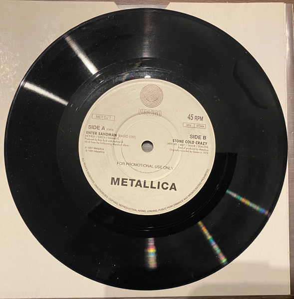 B-side label uses the retail label design, with For Promotional Use Only text added to it. The label lists ‘Stone Cold Crazy’, however, when played, the B-side of the record contains no sound.