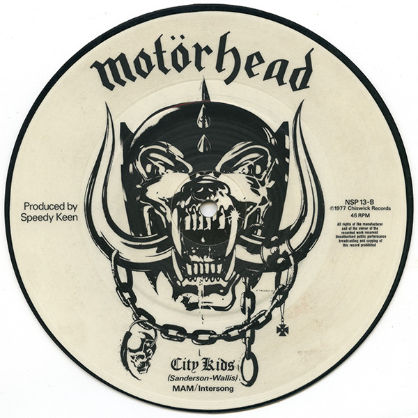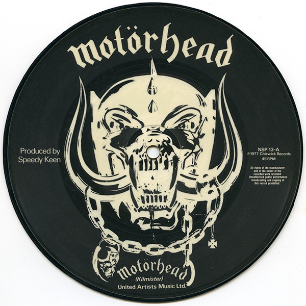 This picture disc release has the Motörhead logo in white on black background on side A, with the same logo in reverse on side B.