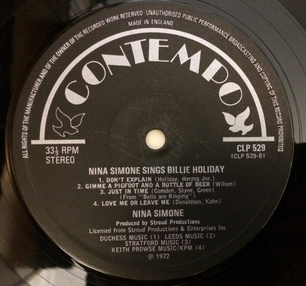 Nina Simone – Nina Simone Sings Billie Holiday – Vinyl Record VG+/NM (Pre Loved)