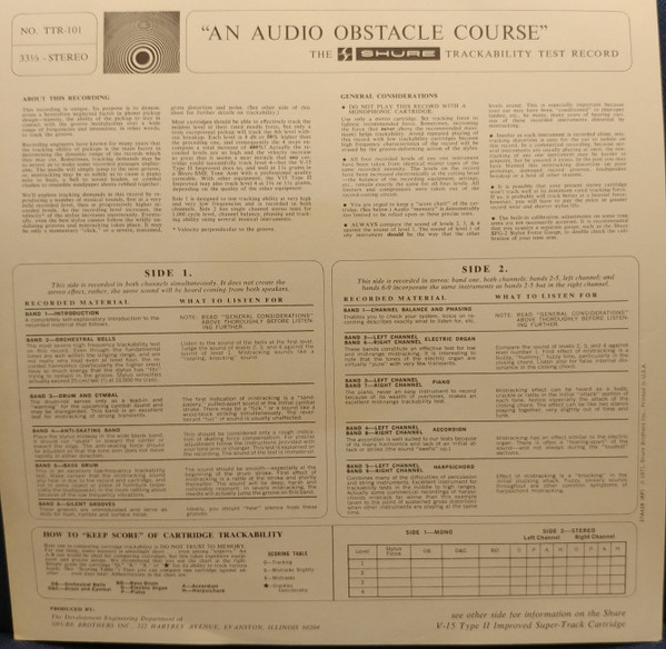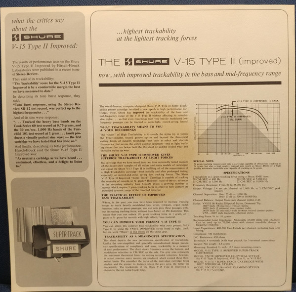 Issued especially for promoting, testing and adjustment of the “Shure V-15 Type II (Improved)” cartridge.