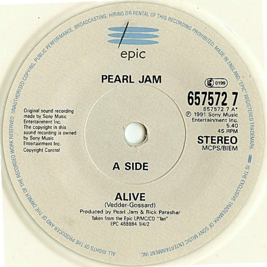 Pearl Jam – Alive – Vinyl Record VG+/VG+ (Pre Loved)