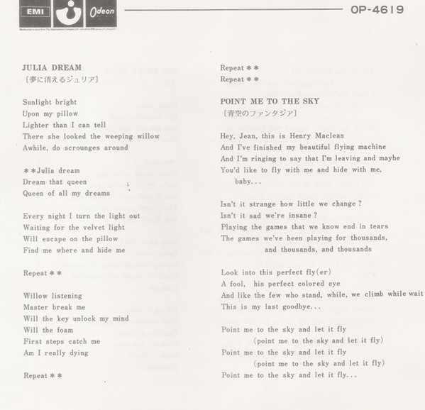 Also known as the “Big Four” EP. Flipback picture sleeve, comes with lyric insert.