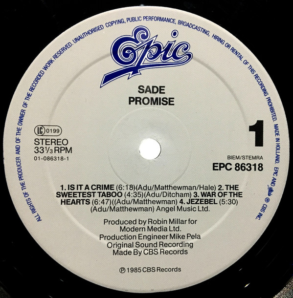 Sade – Promise – Vinyl Record NM/NM (Pre Loved)