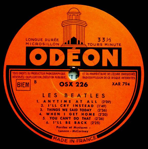 Type of back cover : text “Ecrivez-leur : BEATLES CLUB 194, rue de la Convention….” is printed on the flipback (This release). Another version exist with this text printed at the right of the Artist name ([r1423465])