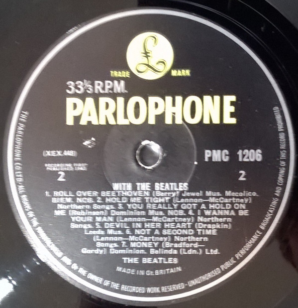 4 – The MT purchase tax code embossing on either side of the spindle hole. Similar variants have the codes [url=https://www.discogs.com/The-Beatles-With-The-Beatles/release/3831201]MKT[/url], [url=https://www.discogs.com/The-Beatles-With-The-Beatles/release/3996134]KT[/url], and one has [url=https://www.discogs.com/The-Beatles-With-The-Beatles/release/8317363]no code[/url].