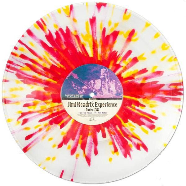– “The Jimi Hendrix Experience Paris ’67” On Custom Dagger Records colored vinyl, recorded at L’Olympia, Paris, October 9, 1967. Not the whole show : “Catfish Blues”, “Foxy Lady” & “The Wind Cries Mary” are missing between “Fire” (A3) and “Rock Me Baby” (A4).