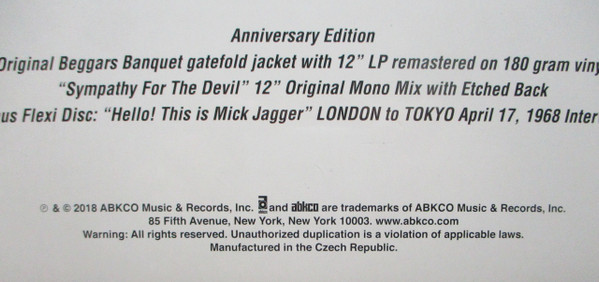 Original Beggars Banquet gatefold jacket with 12″ LP remastered on 180 gram vinyl