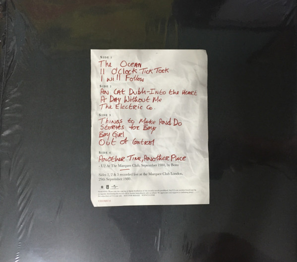Incomplete concert recorded live (sides 1, 2 &3) at the Marquee Club, London, September 29, 1980. “Touch” (played after “I Will Follow”), “Twilight” (played after “A Day Without Me”) and the second performance of “11 O’Clock Tick Tock” (played as a last encore track) are missing.
