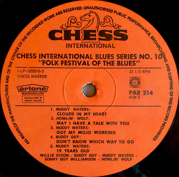 First Dutch release of [r5051778] from late 1964 early 1965. Foldout art sleeve in a hard plastic sleeve. Blue “Chess International Blues Series” banner on the back. Artone regular pentagon (house) label on the left.