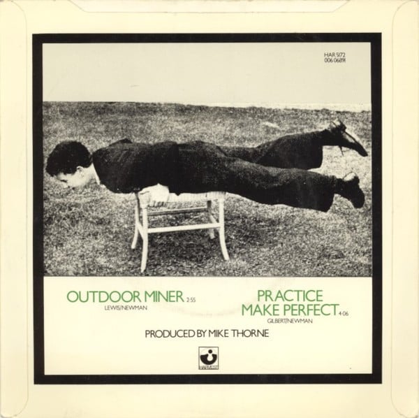 Side A is a different version of “Outdoor Miner” to the one on the “Chairs Missing” album and features a piano solo from producer Mike Thorne.